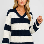 Ellie | V-Neck Striped Jumper with Cable Knit Pattern – Warm Autumn Style