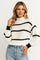 This chunky knitted jumper with a stand-up collar and horizontal stripes is a must-have for cooler days. The ribbed texture and relaxed fit create an effortless look with a cosy feel.