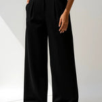 These high-waisted wide-leg trousers with neat front pleats offer the perfect balance of elegance and ease. The soft, flowing fabric and relaxed silhouette create a flattering fit ideal for both casual and dressed-up looks.