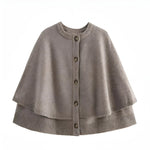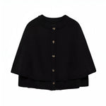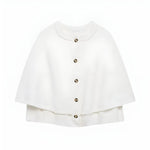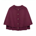 This cape-style cardigan brings a refined touch to modern layering with its flowing silhouette and elegant structure. The cropped length and soft knit texture create a balanced look that drapes naturally over shirts, dresses or fitted tops. Designed for versatile styling, this piece transitions effortlessly across seasons while maintaining a polished appearance.